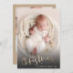 Os anúncios de natalidade sobre o tema das festas elegantes apresentam sua foto favorita de recém-nascido na frente com as saudações Feliz Natal e seus nomes. As estatísticas de natalidade do seu bebê e 3 fotos nas costas. ALTERE a cor de fundo no verso com as nossas ferramentas Editar.