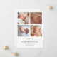Esta placa simples, encantadora, de anúncio de nascimento de fotos, apresenta um design contemporâneo que permite personalizá-la facilmente de acordo com o seu estilo. Abaixo das suas fotos, destacamos 'bem-vindo' em um roteiro quente e familiar em um tom elegante de ouro. Esta parte da design não pode ser alterada. Mas você pode editar o outro texto em ambos os lados para se adequar ao seu estilo, assim como alterar o texto para mostrar seus próprios detalhes. O nome e o texto de detalhes na frente são pretos, mas você pode preferir outra cor ou outra fonte. Se preferir uma aparência mais minimalista, você pode excluir sem substituir qualquer um de nossos estados de amostra - talvez não queira incluir a hora do dia ou a duração, por exemplo. Ou talvez você queira alterar o formato de data para mostrar o mês anterior ao dia, etc. Nós definimos o fundo no verso como transparente, para deixar a cor do seu papel simplesmente servir como o tom base. Você pode mudar isso escolhendo uma cor em vez disso, seja ela azul ou rosa macio ou qualquer outra coisa. Na parte traseira, adicionamos um texto de espaço reservado para que você substitua por sua própria mensagem. A cor de texto padrão é cinza escura, mas você pode alterá-la se preferir outra cor. Embora tenhamos usado todas as maiúsculas para o texto de marcador de posição, você pode mudar essa aparência, e você também pode mudar a fonte. Depois de excluir nosso texto de marcador de posição, você pode simplesmente deixar o vazio de trás completamente, para que possa adicionar uma mensagem manuscrita com suas assinaturas depois de receber seus cartões. Em qualquer caso, lembre-se de remover todo o texto do marcador de posição, assim como nossas fotos de exemplo! O tipo de papel padrão, matte, tem um calor suave e resiste a manobras, então é uma escolha excelente para escrevendo sua própria mensagem. Use as ferramentas intuitivas de design e suas fotos favoritas e sua inspiração para personalizar esta placa simples de anúncio de nascimento personalizada e torná-la exclusivamente sua!