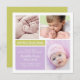 Apresente a sua nova menina à família e aos amigos em estilo com esta design de nascimento moderna e de blocos coloridos. O cartão quadrado inclui três cartazes para mostrar as suas fotos prediletas de recém-nascidos e inclui um pop de cor no verso.