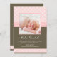 Lindos anúncios de nascimento de bebês com padrão de quatrefoil rosa.