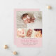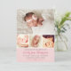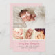 Este cartão de anúncio de na moda e doce fotografia apresenta quatro (4) fotos do seu bebê recém-nascido, texto personalizado que pode ser personalizado, sotaques cardíacos e um esquema de cores de cor rosa-balé claro com cor rosado rosa e cinzas de pérola.