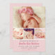 Este cartão de na moda e doce anúncio de fotografia apresenta quatro (4) fotos da sua bebê recém-nascida, texto personalizado que pode ser personalizado, sotaques cardíacos e um esquema de cores de rosas claro, cor-de-rosa rosa, branca e cinza carvical.