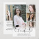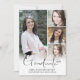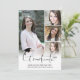 Anuncie o seu segundo grau ou formando universitário com este anúncio de FORMANDO de título de tipografia, moderno e simples, com letras, com 5 fotos (4 na frente e 1 na parte traseira) com boné de formatura preto ou sotaque de cartão. O verso oferece um campo de texto para informações sobre as realizações, atividades e planos futuros do seu formando. ASSISTÊNCIA: para obter ajuda com a modificação/personalização do design, transferir o design para outro produto ou, se você quiser coordenar itens, entre em contato com o designer ANTES DE ENCOMENDAR através da guia MENSAGEM de Bate-papo Zazzle ou envie um email para makeitaboutyoustore@gmail.com.