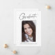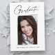Cartões de anúncio de graduação "Foto" limpos, modernos e elegantes, com elementos design do texto moderno e um único roteiro de tinta de caligrafia. A foto do formando na frente da placa é realçada com uma delicada e minimalista placa de gradiente. A parte traseira do cartão oferece espaços de texto personalizados para informações sobre a sua graduação ou pode ser apagada se você quiser enviar uma mensagem. Preto e branco ou personalize facilmente o fundo para corresponder à cor primária da sua escola ou a qualquer cor da sua escolha. Perfeito para mais velho de segundos graus, universitários e universitários.