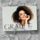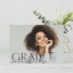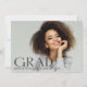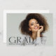 Cartões modernos e ousados de anúncios de graduação "Foto", com design elementos do estilo de moda transparente e de cor escura que leem "FORMANDO", juntamente com uma tipografia minimalista. A foto do formando na frente da placa destaca a superfície inteira. O verso do cartão oferece espaços de texto personalizados para informações sobre sua graduação e futura jornada. Perfeito para mais velho de segundos graus, universitários e universitários.