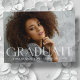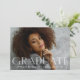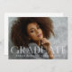Cartões modernos e ousados de anúncios de graduação "Foto", com design elementos de um texto branco transparente e moderno em estilo estilo, com tipografia minimalista. A foto do formando destaca a frente inteira da placa. O verso do cartão oferece espaços de texto personalizados para informações sobre sua graduação e futura jornada. Perfeito para mais velho de segundos graus, universitários e universitários.