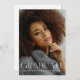 Cartões modernos e ousados de anúncios de graduação "Foto", com design elementos de um texto branco transparente e moderno em estilo estilo, com tipografia minimalista. A foto do formando destaca a frente inteira da placa. O verso do cartão oferece espaços de texto personalizados para informações sobre sua graduação e futura jornada. Perfeito para mais velho de segundos graus, universitários e universitários.