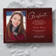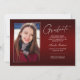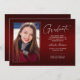 Dois cartões de anúncio de graduação, modernos e elegantes, de dupla face, com elementos design do texto moderno, com um único script de tinta de estilo manuscrito. As fotos do formando na parte frontal e traseira do cartão são acentuadas com uma delicada e minimalista placa de gradiente (a foto traseira está perfeitamente definida e pronta para ser emoldurada). O fundo é um design de gradiente especial, criando lindamente tons vibrantes de vermelho que vão de rubi a burgundy profunda. A frente da placa oferece espaços de texto personalizados para informações sobre sua graduação ou pode ser reformulada para fazer desta placa um convite de festas de formando. Perfeito para o segundo grau, universitário e estudante de formando universitário.
