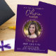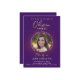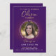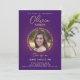 Comemore sua grande conquista em estilo com este moderno convite para fotos de formatura roxa. Apresentando um design minimalista elegante, a frente destaca a tipografia branca limpa, emparelhada com elegante roteiro de ouro falso para seu nome. Uma foto circular personalizável do formando é enquadrada com o ano de graduação e os detalhes da classe, fazer único e pessoal. As costas mostram um fundo roxo simples, mas sofisticado, para um olhar polido. Personalize facilmente a foto, o texto e os detalhes para criar seu próprio convite personalizado para a graduação. Perfeito por anunciar o seu marco e convidar os entes queridos para a sua celebração com uma moda, moderna e na moda.