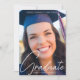 Este anúncio de formatura moderno apresenta uma sofisticada letra branca manuscrita sobre uma foto completa e elegante do seu formando. Personalize este cartão de formatura com uma segunda foto do ensino médio, faculdade ou universidade no verso abaixo dos detalhes do seu formando. A foto do verso é sobreposta com um branco transparente e elegante para um visual moderno do seu cartão.
