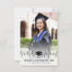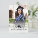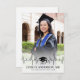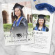 Este cartão de anúncio de formatura apresenta um design arrojado com uma foto de fundo e um gradiente branco na parte inferior. A parte inferior exibe uma ilustração de uma toca de formatura, seguida pelo nome do formando, nome da escola e data. O design moderno, mas atemporal, combina o tom comemorativo da toca de formatura com detalhes personalizados, tornando-o perfeito para anunciar a conquista de qualquer formando.