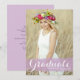 Anuncie sua formatura para familiares e amigos com este cartão de formatura personalizável. Ele apresenta caligrafia branca moderna em um splash de aquarela roxa. Personalize este cartão de anúncio de formatura de caligrafia adicionando sua foto, nome e nome da escola. Este cartão de anúncio de formatura com foto é perfeito para formaturas do ensino médio ou faculdade.