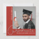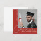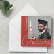 Abrace a alegria do seu sucesso recente com nossos cartões de foto de formatura modernos e elegantes, apresentando um fundo vermelho vibrante e uma escrita 'GRADUADO' sofisticada. Oferecendo um toque de personalização, esses cartões encapsulam sua foto de formatura favorita junto com seu nome, escola e turma de formatura para um souvenir querido do seu marco triunfal.