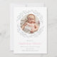 Garland deixa cartão de nascimento de foto de menina para apresentar sua linda bebê recém-nascida. A frente inclui uma foto circular de bebê enquadrada por uma delicada terra de folhas rosa e prata. Personalize o nome do seu bebê em um guião rosa delicado e estatísticas de natalidade em prata. O inverso tem um fundo cor-de-rosa delicado. Projetado por Thisnotme©