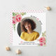 Flores cor-de-rosa Classe de anúncio de fotos da graduação em 2025. Um design adorável que mostra uma foto, flores cor-de-rosa nos cantos superior esquerdo e inferior direito, o texto "Classe 2025" em preto e rosa-quente e um boné de formatura rosa. A parte traseira inclui um padrão de bolinhas em rosa quente e branco.