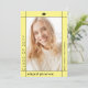 Anúncio de fotos da graduação da Classe Amarela Moderna de 2025. Apresentando uma visão moderna do anúncio clássico de fotos de formatura para a Classe de 2024. Este design apresenta uma borda preta colocada sobre um fundo amarelo macio e leve. A fronteira destaca a foto do formando com gosto, destacando sua grande realização. O nome do formando e outros detalhes importantes são colocados estrategicamente fora do quadro, no pano de fundo amarelo. O verso do anúncio inclui outra foto e todas as informações necessárias para um anúncio completo e visualmente cativante.