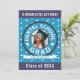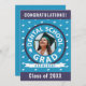 O cartão com fotos de graduação da escola dentária lê Parabéns com lugar para adicionar uma foto do seu formando da escola de odontologia, nome e ano de aula no lado frontal. No verso, apresente a realização do seu formando e os próximos passos para todos verem e celebrarem.