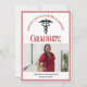 Este clássico cartão de anúncio de licenciatura em Medicina ou Enfermagem, vermelho e preto, apresenta tipografia clássica para uma classe de formando 2025 acima da foto de seu aluno. Personalize com o seu ano de graduação sob o símbolo caduceus e fotografe para um cartão médico ou enfermeiro personalizado excelente.