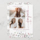Compartilhe o momento mais promissor do seu formando com este Cartão de Licenciação Pink de Flor Púrpura de Pastel Moles. Delicar as flores silvestres de aquarela em tons roxos, roxos e azuis macios com imagens verdes de sábio três fotos do seu formando, enquanto o verso apresenta um belo padrão de coordenação. Personalize cada detalhe — do texto às fontes e cores de fundo — para criar uma marca de seleção que captura seu marco. Celebre o sucesso deles com um anúncio tão especial quanto eles são.