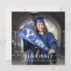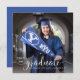 Este lindo e elegante anúncio de festa de formatura mostra uma foto da faculdade ou do formando segundo grau na frente do cartão, com uma fonte bonito de escrita de caligrafia, que sobrepõe sua foto do formando. Você pode ajustar o texto na parte traseira do cartão para fazer com que isso seja um simples anúncio de graduação ou um convite de festas de formando. Um na moda, classe e design de graduação simples! Projetado para você pelo Blackberry Boulevard.