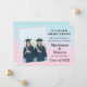 É uma formatura dupla. Cartão de anúncio de formatura de segundo grau para gêmeos divertidos e modernos com um fundo em forma de óvulo, azul e rosa. Personalize o texto para orgulhosamente anunciar a formatura de suas filhas e o ano de aula.