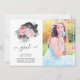 Cartão com fotos de anúncio de graduação de rosas de safra rosa e preto personalizável para suas especificações de evento. É recomendada uma foto do estilo do retrato.