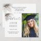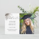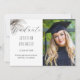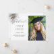 Este anúncio elegante de fotos de formatura apresenta um sutil design floral de cinza prateada com "Formando" sobreposto num roteiro moderno. Personalize com sua foto de formando, nome e informações da escola. Você pode ajustar o texto na parte traseira do cartão para fazer deste um simples anúncio de graduação ou um convite de festas. Parabéns ao formando!