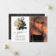 Cartão com fotos de anúncio de graduação floral de cor d'água preta e dourada com uma caligrafia vintage inversa. É recomendada uma foto do estilo do retrato.
