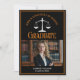 Este moderno cartão de anúncio de graduação da escola de direito preto e laranja apresenta tipografia clássica para uma classe de formando 2024 acima da foto de seu aluno. Personalize com o seu ano de graduação sob as escalas brancas de justiça e fotografia para um elegante advogado personalizado ou cartão de advogado.