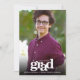 Tenha orgulho, alegria e mostre este marco do seu formando favorito! Envie este anúncio de fotos impressionante, simples, moderno e personalizado para um evento a ser lembrado. A tipografia branca, escura uma foto da sua escolha. Personalize o texto personalizado com o nome do seu formando, ano escolar e ano de aula. No verso, sob o gráfico ousado de "parabéns", adicione sua nota pessoal, na próxima escola que eles frequentam - ou qualquer outra coisa que você queira compartilhar. Convites de encontro, cartas de agradecimento, bonés, guardanapos, pratos e outras vestimentas de graduação também estão disponíveis nesta coleção de tendências e na moda. Garantido para adicionar diversão na moda à sua ocasião especial! Basta substituir a foto por uma de suas, digitar o nome do seu formando, ano escolar e de aula, adicionar sua nota pessoal no verso, e você pode personalizar facilmente esse anúncio de graduação. Por favor, me mande mensagens com quaisquer perguntas ou solicitações.