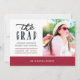 Cartão de anúncio de graduação de fotos em vermelho e branco personalizável para suas especificações. É recomendado um formato quadrado para a foto frontal e o cenário para o contrário.