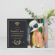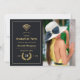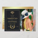 Convite de festa de formatura virtual em sotaques de preto e ouro projetados para serem rápida e facilmente personalizados de acordo com as suas especificações de evento. Uma foto de formato de retrato é recomendada.