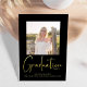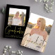 Este design apresenta um cartão de anúncio de graduação, com um moderno minimalista, ensino médio ou faculdade, uma tipografia elegante, simples, modelo de 2 fotos, preto ou dourado, script moderno, script de caligrafia, convite de festa de graduação