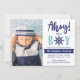 Envie esta adorável carta náutica de anúncio de nascimento de bebê para a família e amigos para anunciar o nascimento do seu novo filho. A design apresenta uma foto de um bebê à esquerda vestindo um pequeno equipamento de marinheiro para você mudar para sua foto de bebê. À direita lê-se "Ahoy é um Boy, nosso marinheiro chegou" em tipografia azul. Abaixo está o nome do seu bebê e os detalhes de nascimento para você personalizar. A parte traseira da placa tem um padrão listrado branco e azul. Esta design foi uma alegria para te criar. Os melhores votos para o seu novo filho! Desenhado pela artista ©Susan Coffey.