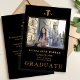 Modelo de cartão de anúncio da formatura da escola de enfermagem em preto e ouro moderno e elegante com sua foto e texto personalizados.