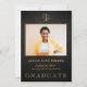 Um visual moderno e elegante de couro preto e um falso modelo de cartão de licenciatura em direito de cobre, com escala de justiça, sua foto e texto personalizados.