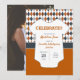 O padrão elegante de estilo em cores escolares de laranja queimada e cinzas é o pano de fundo para este lindo anúncio de fotos de bebê. Um macacão branco tem toda a mensagem escrita para dar detalhes sobre o seu novo bebê. O verso inclui uma foto. O design vem em marrom e cinza, laranja e cinza queimadas, vermelho e preto, verde e preto, laranja e marinho, verde e amarelo, roxo e cinza. Produtos correspondentes disponíveis.