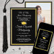 Compartilhe a alegria de um segundo grau ou formandos com anúncios personalizados de preto, branco e amarelo-ouro de fotos. (DICA DE IMAGEM: Uma maneira fácil de centralizar uma imagem exatamente como você deseja é recortá-la antes de carregá-la no site do Zazzle.) A formulação neste modelo formal é simples de personalizar com nomes de pais e formandos, honras de grau, detalhes de convite de festas, citação inspiracional favorita, novos endereços e informações de contato, planos educacionais futuros ou nova posição de emprego. Design apresenta um fundo preto moderno, boné conselho amarelo de argamassa, caligrafia elegante de script, tipografia tradicional e uma foto de sua escolha, como uma foto de mais velho ou imagem da cerimônia de início. Estes cartões de anúncio de graduação são uma maneira moderna e chique de compartilhar sua celebração especial com a família e os amigos. Parabéns ao formando!