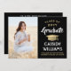 Compartilhe a alegria de um segundo grau ou formandos com estes anúncios personalizados em preto, ouro e branco. (DICA DE IMAGEM: Uma maneira fácil de centralizar uma imagem exatamente como você deseja é recortá-la antes de carregá-la no site do Zazzle.) Este modelo é simples de personalizar com qualquer texto de sua escolha, como detalhes do convite de festas, nomes de pais, honras especiais, título de grau, citação inspiracional favorita, informações de contato do formando, planos educacionais futuros ou nova posição de emprego. Se houver algum texto não desejado, simplesmente exclua-o. Design apresenta um falso boné de conselho de folha de ouro, caligrafia de script de estilo manuscrito, tipografia moderna minimalista e uma foto de sua escolha, como uma fotografia de mais velho ou imagem da cerimônia de início. Observe que o ouro é impresso a cor, não a folha metálica. Estas elegantes cartas de graduação são uma maneira moderna e chique de compartilhar sua celebração especial com a família e os amigos. Parabéns ao formando!