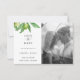 Folhas e azeitonas da Elegante aquarela Tuscana, Photo Wedding Save the Date Card. Projetado para combinar com nossa Coleção de Verde Oleícola Tuscana. A cor de apoio, mostrada em verde-floresta, pode ser personalizada.