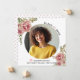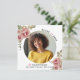 Flores cor-de-rosa rosa Dusty Anúncio de fotos da graduação 2023. Um bonito design que mostra uma foto, poeirentas flores cor-de-rosa rosa nos cantos superior esquerdo e inferior direito, o texto "Classe de 2023" em rosa preto e poeirento e um boné de formatura rosa. O verso inclui um padrão de bolinhas em rosa poeirento e branco.