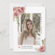 Flores cor-de-rosa rosa Dusty Anúncio de fotos da graduação 2025. Um design adorável que mostra uma foto, flores rosa poeirentas nos cantos superior esquerdo e inferior direito, o texto "CLASSE DE 2025" em rosa preto e poeirento e um boné de formatura rosa. O verso inclui um padrão de bolinhas.