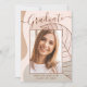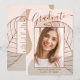 Este elegante cartão de anúncio de graduação & chic, apresenta um roteiro de caligrafia delicado e um belo trabalho de arte abstrato moderno em tons de rosa-pincel e esticado. A foto dos formandos destaca a frente do cartão, enquanto a parte traseira do cartão oferece espaços de texto personalizados para informações sobre a formatura e a viagem futura.