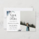 Trendy, azul-chic e flores e folhas anêmonas, Photo Wedding Save the Date Card. Concebido para corresponder à nossa Coleção de Anéis Azuis.