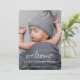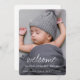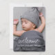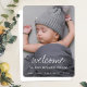 Esta carta simples e encantadora de anúncio de nascimento de fotos apresenta um design contemporâneo que é facilmente personalizado com a foto do seu bebê, os detalhes e a sua mensagem.Escolhemos cantos arredondados como a configuração padrão de forma, mas você pode facilmente mudar o aspecto para cantos agudos, já que essa aparência também funciona maravilhosamente com este design. Experimente as duas formas no modo de edição e veja quais são as suas propriedades! Junto com o formato de foto do cheio, fizemos 'bem-vindos' o foco, apresentado em minúsculas em uma escrita moderna que é ao mesmo tempo arrumada e legível, mas também expressiva, quente e familiar. Este script e o outro texto na frente da placa são brancos nítidos. Você pode mudar a cor e a fonte deste ou de qualquer outro texto de acordo com o seu gosto, e nós convidamos você a brincar com esses elementos. Por exemplo, você poderia mudar a parte 'bem-vinda' do design para outra coisa, como 'apresentar' ou 'olá, mundo!' etc. E você sempre pode mudar o tamanho do texto se sua própria versão for muito longa para ajustado do espaço. Se preferir uma aparência mais minimalista, você pode excluir sem substituir qualquer um de nossos estados de amostra - talvez não queira incluir a hora do dia ou a duração, por exemplo. Nós definimos o fundo no verso como transparente, para deixar a cor do seu papel simplesmente servir como o tom base. Você pode mudar isso escolhendo uma cor em vez disso, seja ela azul ou rosa macio ou qualquer outra coisa. Na parte traseira, adicionamos um texto de espaço reservado para que você substitua por sua própria mensagem. Você pode alterar a fonte e/ou a cor do texto também. A cor de texto padrão no verso é um tom de cinza. Depois de excluir nosso texto de marcador de posição, você pode simplesmente deixar o vazio de trás completamente, para que possa adicionar uma mensagem manuscrita com suas assinaturas depois de receber seus cartões. Ou você pode digitar uma mensagem e depois assinar os cartões manualmente depois de recebê-los, em preferencialmente do que digitar seus nomes ao editar o outro texto. Em qualquer caso, lembre-se de remover todo o texto do marcador de posição no verso, incluindo os nomes de exemplo, assim como os detalhes de exemplo e a foto na frente! O tipo de papel padrão, matte, tem um calor suave e resiste a manobras, então é uma escolha excelente para escrevendo sua própria mensagem. Use as ferramentas intuitivas de design, sua foto favorita e sua inspiração para personalizar esta placa simples de anúncio de nascimento personalizada e torná-la exclusivamente sua!