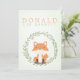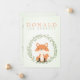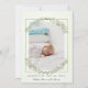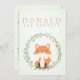 Nossa bela carta de anúncio de nascimento de foto apresenta seu lindo bebê com seu nome na frente com a moldura verde de folha de cor d'água e uma raposa fofa fofa. Personalize o verso com um texto de fotografia e script recém-nascido para apresentar as informações importantes sobre natalidade do seu bebê e os nomes dos pais. A foto é emoldurada por uma moldura macia e cortada com ranhuras verdes a aquarelas.