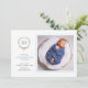 Verde elegante e arco com iniciais Cartão de anúncio de nascimento de bebê com fotografia