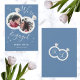 A placa de anúncio do noivado contém anéis de noivado com foto do casal. Na parte traseira, os nomes do casal inicial são dentro. #noivado #engagementring #casamento #dustyblue #white #nome inicial #foto #wereengajado #moderno #acoplador