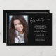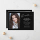 Dois cartões de anúncio de graduação, modernos e elegantes, com dois elementos design do texto moderno, com estilo manuscrito de tinta tinteiro em branco para opções de cores de fundo mais escuras. As fotos do formando na parte frontal e traseira da placa são acentuadas com uma delicada e minimalista placa de gradiente. A frente do cartão oferece espaços de texto personalizados para informações sobre sua graduação. Preto e branco ou personalize facilmente o fundo para corresponder à cor primária da sua escola ou a qualquer cor da sua escolha. Perfeito para o segundo grau, universitário e estudante de formando universitário.