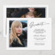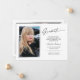 Dois cartões de anúncio de graduação, modernos e elegantes, de dois lados, com design elementos do texto moderno, com um roteiro de tinta de caligrafia de estilo manuscrito. As fotos do formando na parte frontal e traseira da placa são acentuadas com uma delicada e minimalista placa de gradiente. A frente do cartão oferece espaços de texto personalizados para informações sobre sua graduação ou pode ser apagada se você quiser escrever uma mensagem. Preto e branco ou personalize facilmente o fundo para corresponder à cor primária da sua escola ou a qualquer cor da sua escolha. Perfeito para o segundo grau, universitário e estudante de formando universitário.